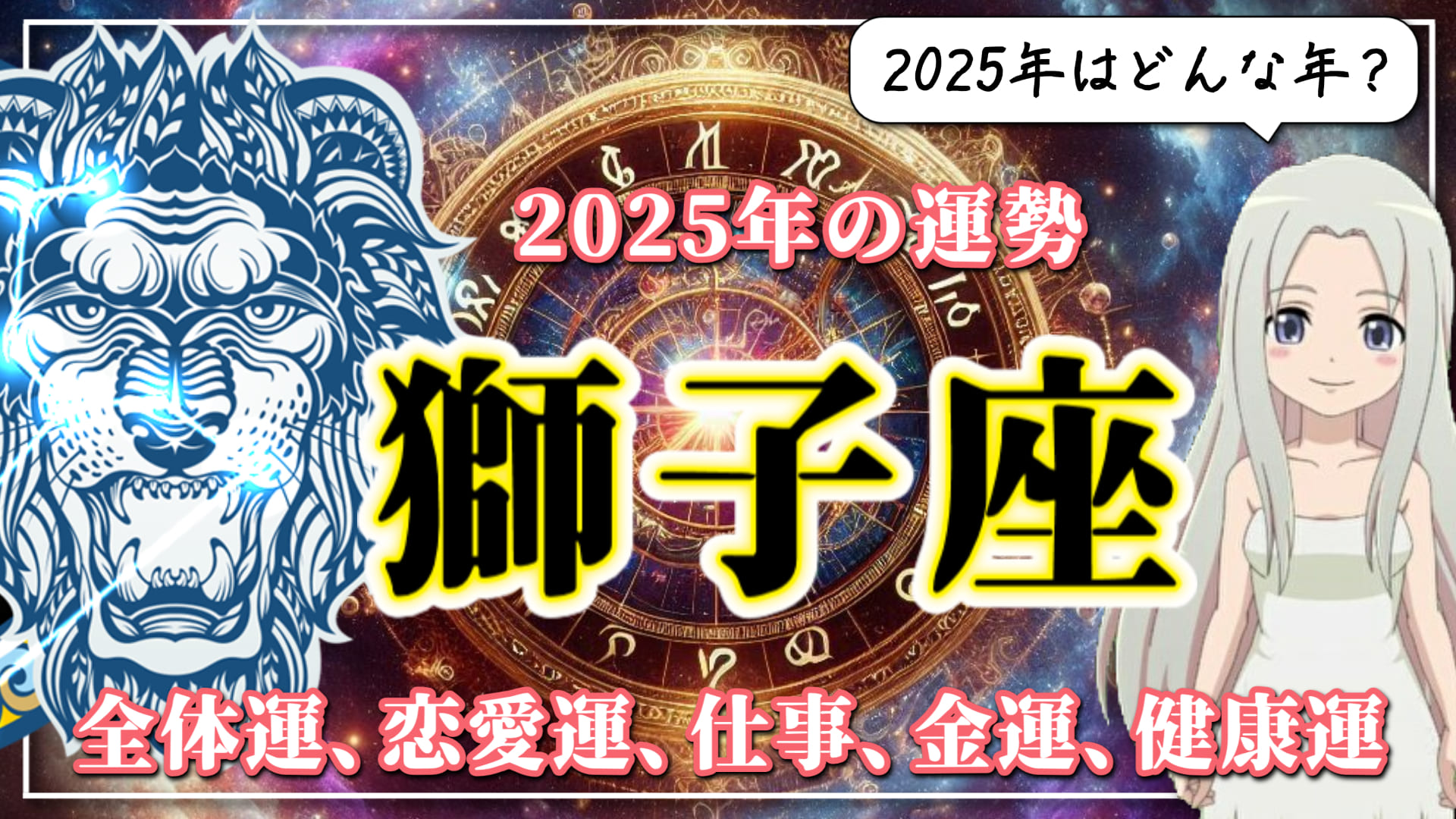 2025年のしし座の運勢を全体運、恋愛運、仕事、金運、健康運別にご紹介します。あなたの2025年は?