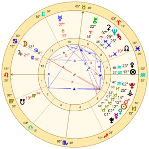 ホロスコープをみてみると、蟹座13度、山羊座13度で月と太陽が180度の角度を取っているのがわかります。