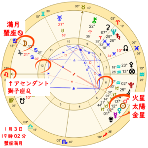 1月3日の蟹座の満月についての詳細を、ホロスコープで解説していきます。