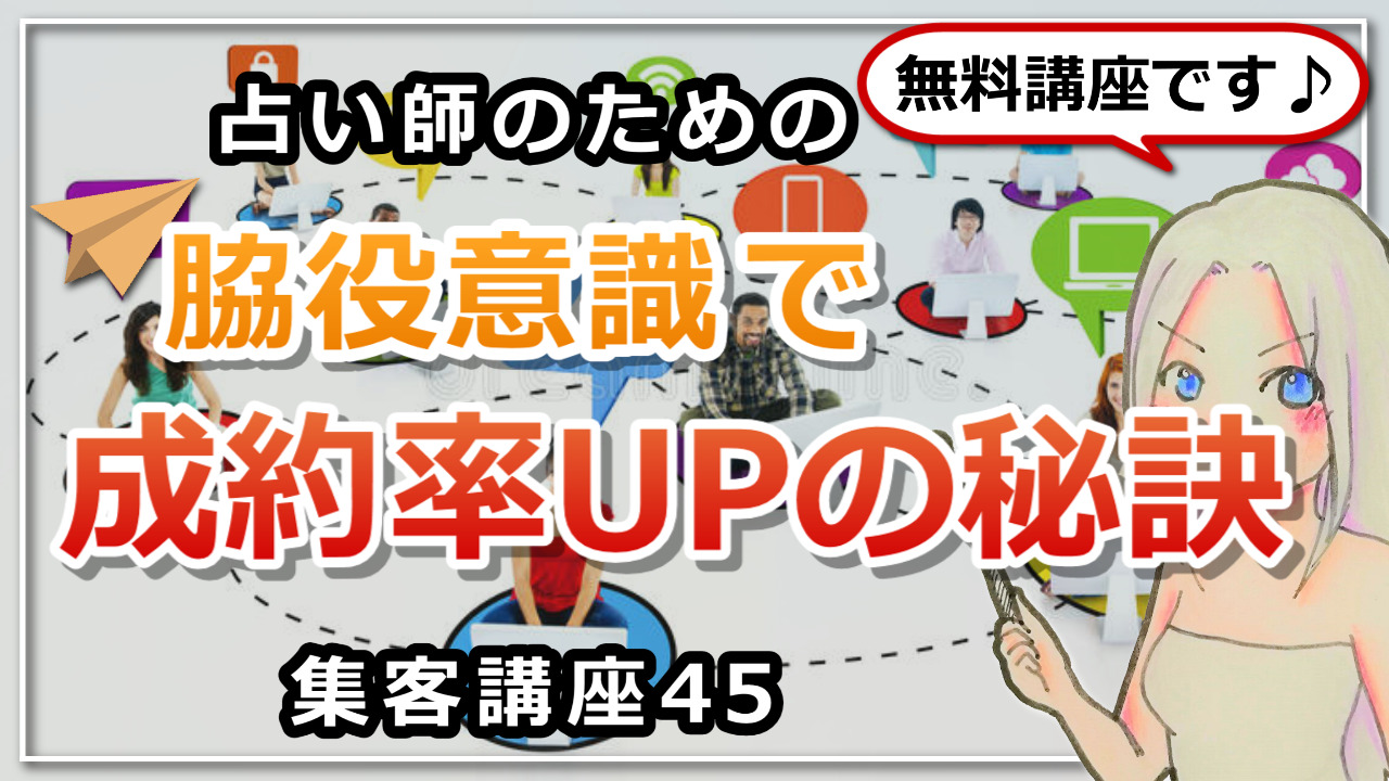 占い師さんのための集客講座の第45回目としまして、脇役意識を持つことで成約率をアップする方法についてのお話をしていきたいと思います。