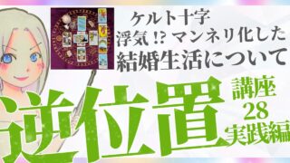 【タロット逆位置リーディング講座28】実践編❶テーマ「マンネリ化した結婚生活は今後どうなる?夫は浮気しているか」について、リーディングしていきます。