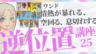 タロット逆位置リーディング講座 【タロット逆位置リーディング講座25】小アルカナ「ワンド」逆位置 ~ 情熱が暴れる、空回る、息切れする… ~ 【タロット逆位置リーディング講座25】小アルカナ「ワンド」逆位置~ 情熱が暴れる、空回る、息切れする… ~についてのお話をしていきます。 2026.01.28 タロット逆位置リーディング講座